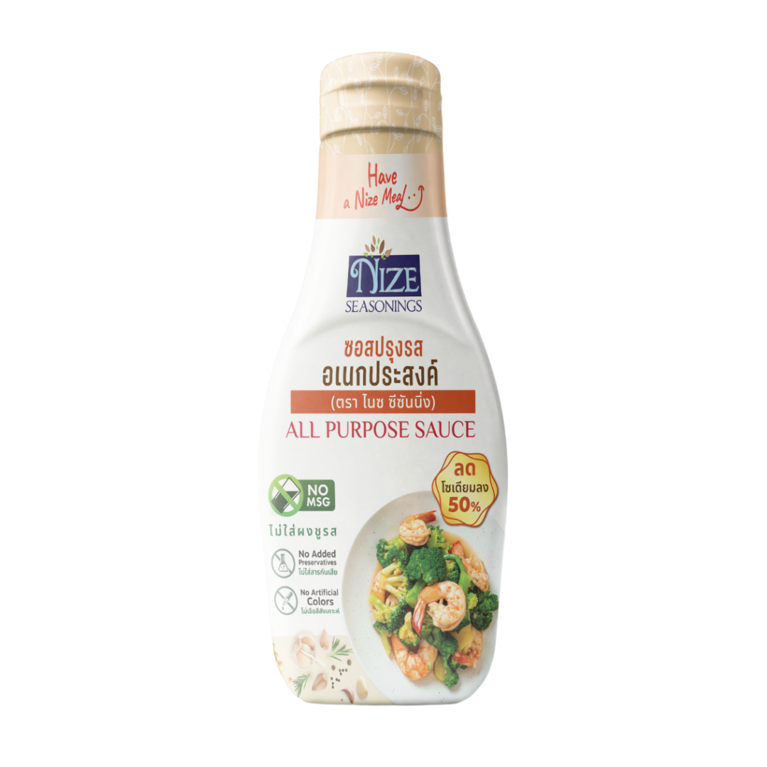 NIZE ซอสปรุงรสอเนกประสงค์ ลดโซเดียม 50% ไม่ใส่ผงชูรส 200g. | ซอสสุขภาพ สูตรลดโซเดียม ไม่มีสารกันเสีย