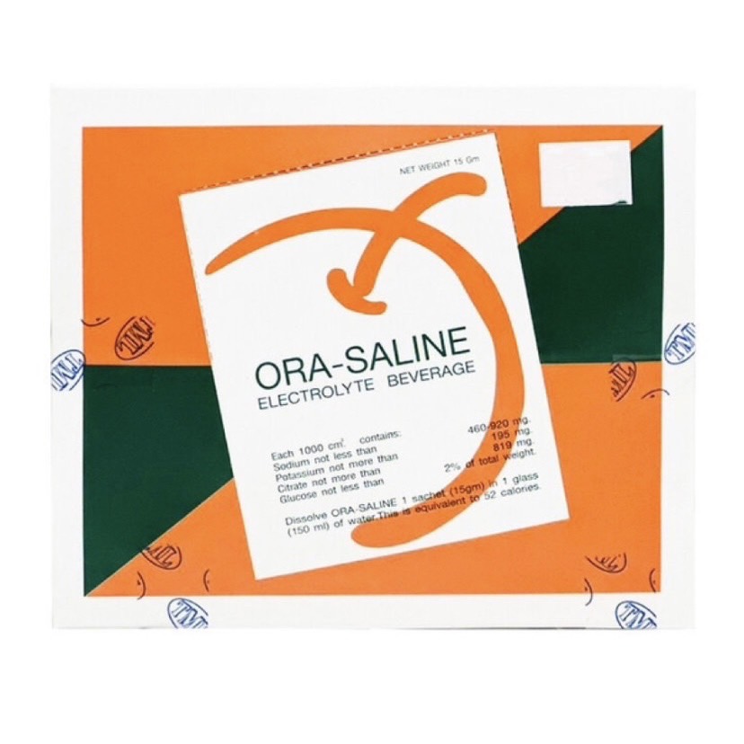 ORA-SALINE เครื่องดื่มเกลือแร่ โอร่า ซาลาย รสส้ม 1 กล่อง ( 50 ซอง )